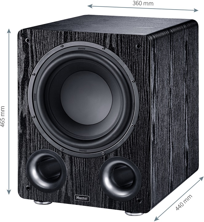 Модель Magnat Alpha RS12 в корпусе с фазоинвертором и двумя портами Airflex оснащена 300-мм динамиком с длинным ходом диффузора. Встроенный усилитель класса D выдает 120 Вт постоянной мощности с кратковременными пиковыми всплесками до 240 Вт. Сабвуфер RS12 обеспечивает глубокий бас до 20 Гц. Встроенный усилитель позволяет регулировать громкость, частоту разделительного фильтра и фазу для оптимальной адаптации к системе с учетом акустических особенностей помещения.