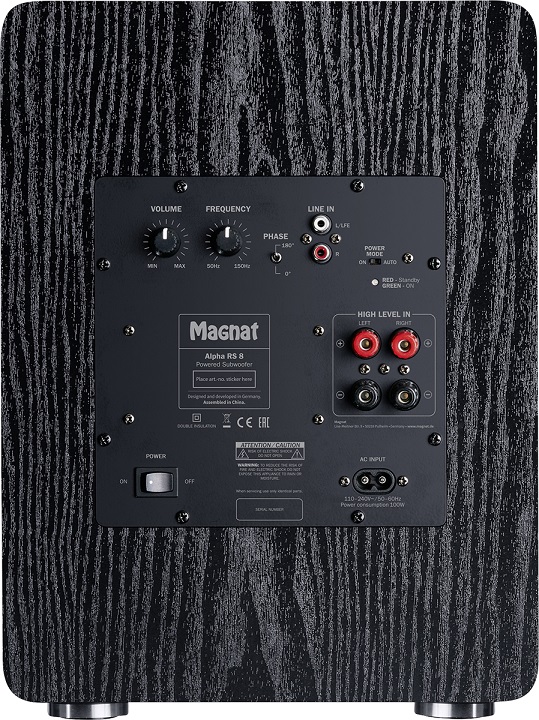 Модель Magnat Alpha RS 8 в корпусе с фазоинвертором и двумя портами Airflex оснащена 200-мм динамиком с длинным ходом диффузора. Встроенный усилитель класса D выдает 80 Вт постоянной мощности с кратковременными пиковыми всплесками до 160 Вт. Сабвуфер RS8 обеспечивает глубокий бас до 25 Гц. Встроенный усилитель позволяет регулировать громкость, частоту разделительного фильтра и фазу для оптимальной адаптации к системе с учетом акустических особенностей помещения.