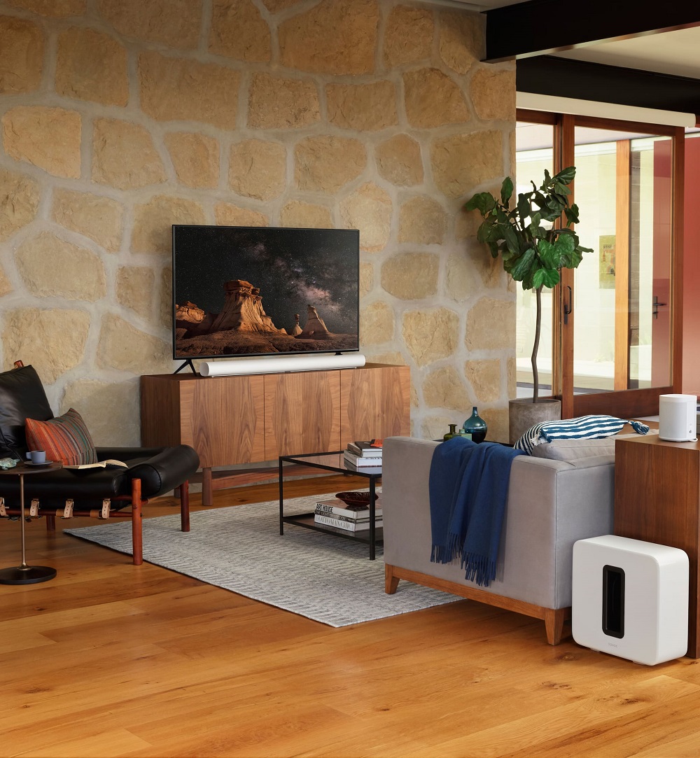 Подключив к Sonos Arc беспроводной сабвуфер Sonos Sub и колонки One SL для окружающего звука – вы получите полноценный домашний кинотеатра с мощными басами для еще большего эффекта погружения.