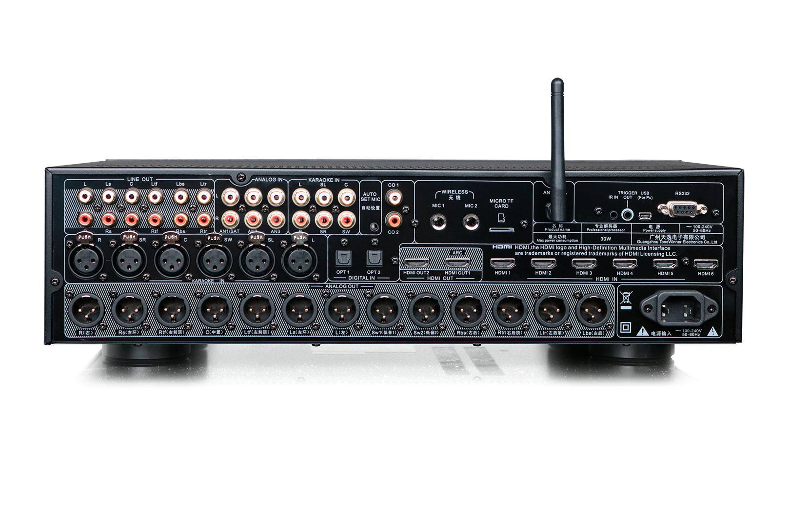 11.1-канальный AV-процессор. Форматы: Dolby Atmos, DTS:X, Dolby TrueHD, Dolby Pro Logic IIx, Dolby Vision, DTS, DTS HD Master Audio, DTS Neo:6. 6 HDMI (2.1, HDCP 2.2, 4K, HDR 10, Dolby Vision). Выходы: 2xHDMI ARC. Оптические, коаксиальные, USB входы. Входы для караоке. Автонастройка: с помощью микрофона (опционально). Bluetooth. Управление с мобильных устройств. Размеры (ШхВхГ): 431x130x317мм. Вес:5,5кг.