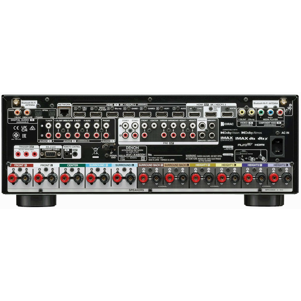 11.4-канальный 8K Video AV-усилитель. Мощность 125Вт х 9, коммутация HDMI (ARC): 7 входов, 3 выхода. Форматы окружающего звучания Dolby Atmos, Dolby Atmos Height Virtualization, DTS:X™, DTS Virtual:X, Auro 3D, 360 Reality Audio, MPEG, Alpha-процессор 32 бита, IMAX Enhanced. Сетевые мультирум-технологии HEOS и Apple AirPlay 2, управление голосом. Автонастройка Audyssey Mult EQ XT32 и опционально Dirac Live. Размеры (ШхВхГ): 434х167х379мм, вес: 13,7кг.