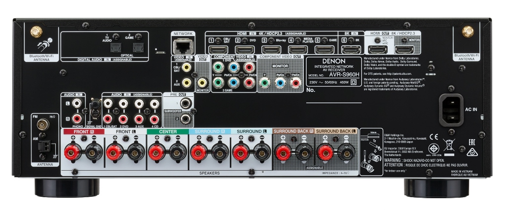 AV-ресивер Denon AVR-S960H с мощностью 145 Вт на канал обеспечивает потрясающее качество звука и поддерживает новейшие форматы объемного звучания, такие как Dolby Atmos, DTS: X и DTS Virtual: X. AVR-S960H также поддерживает видео в формате 8K/60Гц и 4K/120Гц, и новейшие технологии улучшения изображения Dolby Vision, HDR10, HDR10 +, Dynamic HDR, HLG, а также масштабирование изображения до формата 8K и поддержку HDCP 2.3 на всех входах HDMI.