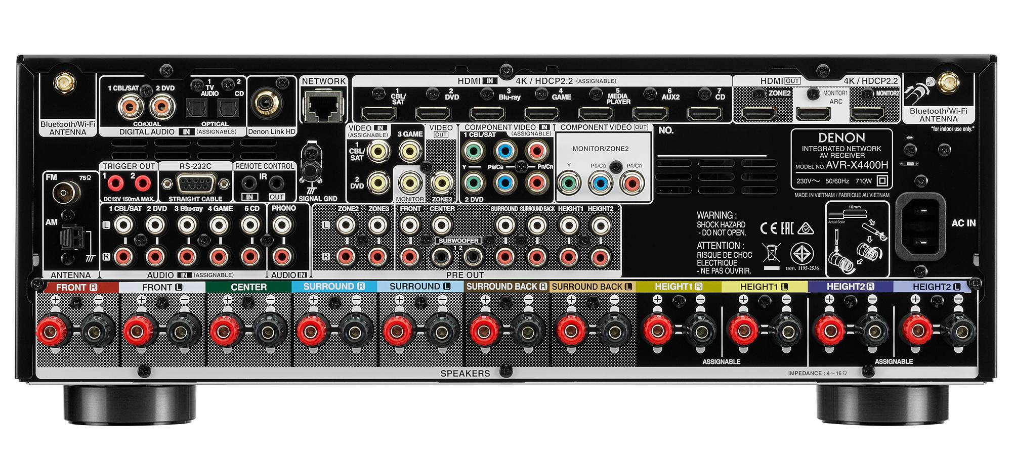 Все восемь HDMI-входов и три выхода HDMI поддерживают совместимость с HDCP 2.2 и последние спецификации HDMI и воспроизводят видео 4K Ultra HD 60Hz, поддерживает высокий динамический диапазон (HDR), совместим с Dolby Vision, поддерживает технологии Hybrid Log Gamma (HLG) и eARC (расширенный канал возврата звука) для воспроизведения многоканального объемного звука с Вашего Смарт-ТВ.