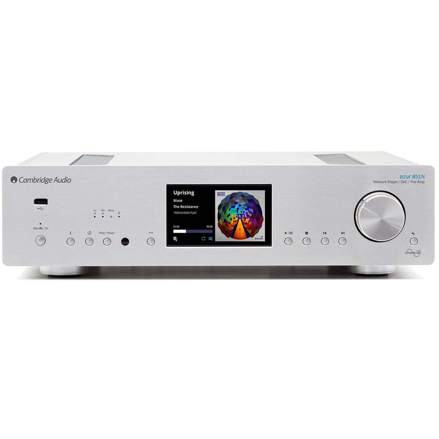 Сетевой проигрыватель Cambridge Audio Azur 851N - универсальное устроство, объединяющая функции высококачественного сетевого стриммера и цифро-аналогового преобразователя. Аппарат выполнен в металлическом корпусе на антирезонансном шасси с толстой алюминиевой передней панелью, центральное место на которой занимает цветной дисплей. Медиаплеерлеер оснащен тороидальным сетевым трансформатором. Его мощность обеспечивает точную и стабильную работу всех схем Azur 851N.