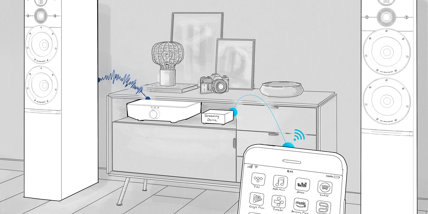 CALLISTO 6 C подключается по стабильному беспроводному соединению к DALI Sound Hub на частоте 2.4 или 5.8 ГГц, в зависимости от расположения колонок и качества связи. Задержка менее 25 мс позволяет обеспечить нормальную синхронизацию видео и аудио сигналов в домашних театрах.