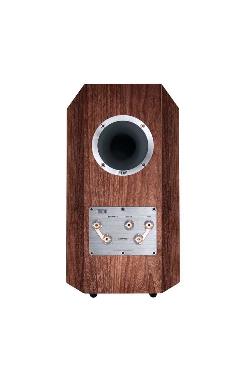 Компактные High-End полочные АС с выдающимися акустическими свойствами. Модель привлекает внимание скошенной верхней панелью, закругленными боковыми панелями и сужающемуся к тылу корпусу. В НЧ/СЧ секции установлен 170-мм мидвуфер с великолепно зарекомендовавшим себя бумажным диффузором «HECO Kraft», который славится своими высокими аудиофильскими качествами. Недавно разработанный твитер «Fluktus» оснащенный оптимизированным мультиволновым алюминиевым фланцем и 30-мм тканевым куполом «PFC Dome», обеспечивает точнейшую локализацию и фокусировку звуковых образов с отличной 3D сценой и тембрально естественное звучание.