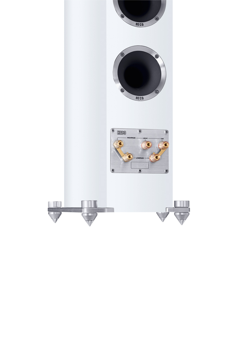 Большие современные High-End напольные АС с выдающимися акустическими свойствами. Топовая модель в линейке привлекает внимание скошенной верхней панелью и широким устойчивым подиумом из брашированного алюминия на массивных шипах. Регулируемые по высоте металлические шипы позволяют установить АС строго вертикально, обеспечивая акустическую развязку и максимально точный саундстейдж. В НЧ/СЧ секциях установлены два 200-мм вуфера и один 170-миллиметровый мидрейндж с великолепно зарекомендовавшими себя бумажными диффузорами «HECO Kraft», которые славятся своими высокими аудиофильскими качествами. Недавно разработанный твитер «Fluktus» оснащенный оптимизированным мультиволновым алюминиевым фланцем и 30-мм тканевым куполом «PFC Dome», обеспечивает точнейшую локализацию и фокусировку звуковых образов с отличной 3D сценой и тембрально естественное звучание.