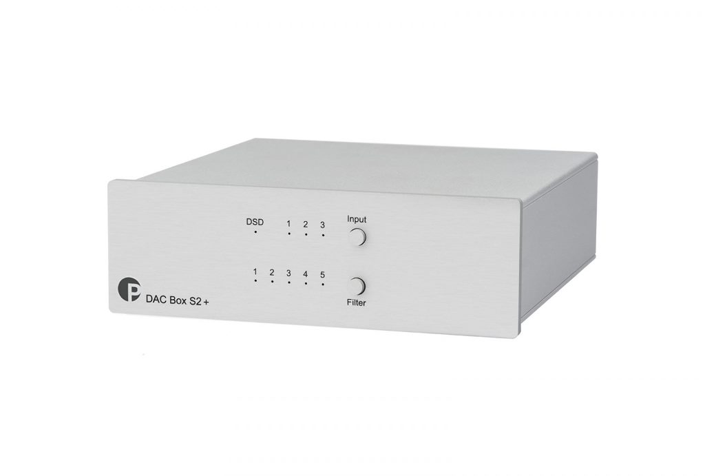 Цифро-аналоговый преобразователь Pro-Ject DAC Box S2 + соответствует самым современным требованиям. Он поддерживает воспроизведение файлов PCM до 32 бит / 768 кГц и DSD до 11,2 МГц. ЦАП Pro-Ject DAC Box S2 + оснащен пятью переключаемыми цифровыми фильтрами для настройки звука в соответствии с предпочтениями пользователя.