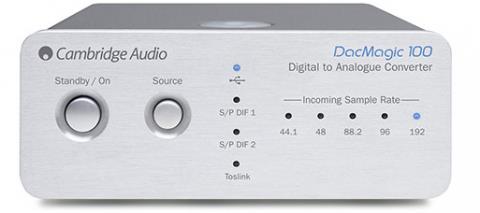 Цифро-аналоговый преобразователь DacMagic 100 британской компании Cambridge Audio поддерживает частоты дискретизации аудиофайлов 32, 44.1, 48, 88.2, 96 и 192 кГц (соответствующий режим работы отображается на индикаторах алюминиевой фронтальной панели), имеет два коаксиальных цифровых входа, один оптический, и вход USB. Для питания устройства используется внешний источник.