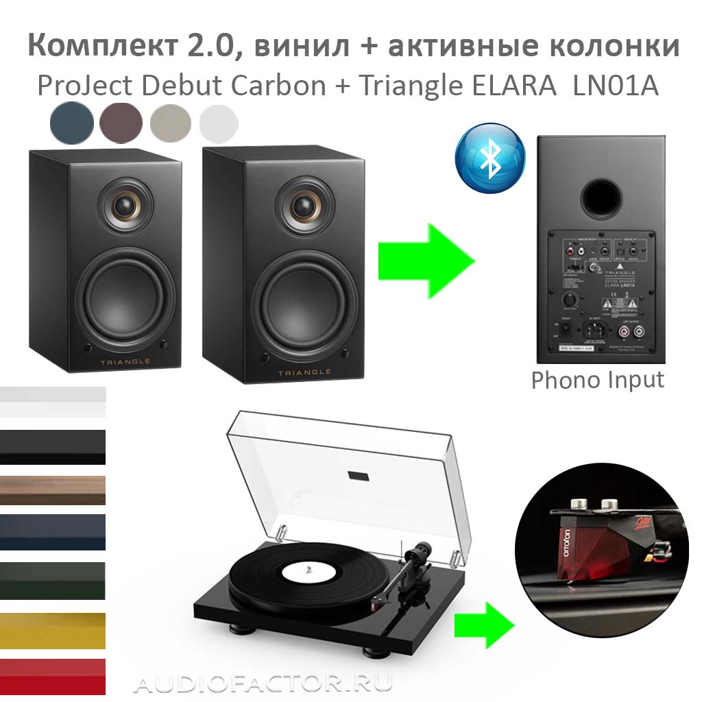 Комплект: винил + активные колонки. Состав: проигрыватель виниловых пластинок Pro Ject Debut Carbon Evo + активная акустика Triangle ELARA LN01A. Музыкальная мощность 50 Вт х 2. Диапазон 56Гц-22кГц. Входы Bluetooth 4.0, Digital optical, coaxial. Выход на сабвуфер.