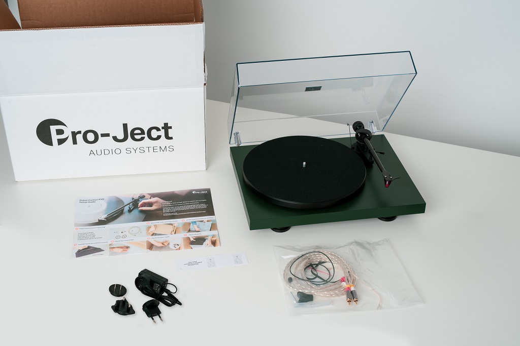 Новый проигрыватель Debut Carbon Evo поставляется со съемной акриловой пылезащитной крышкой. В комплект также входит адаптер для 7" пластинок, Phono RCA кабель Connect It E, круглый дополнительный пассик для пластинок 78 об.мин. В комплекте вы также найдете новое руководство пользователя со всей информацией, которая необходима для правильной настройки вашего проигрывателя Debut Carbon Evo.