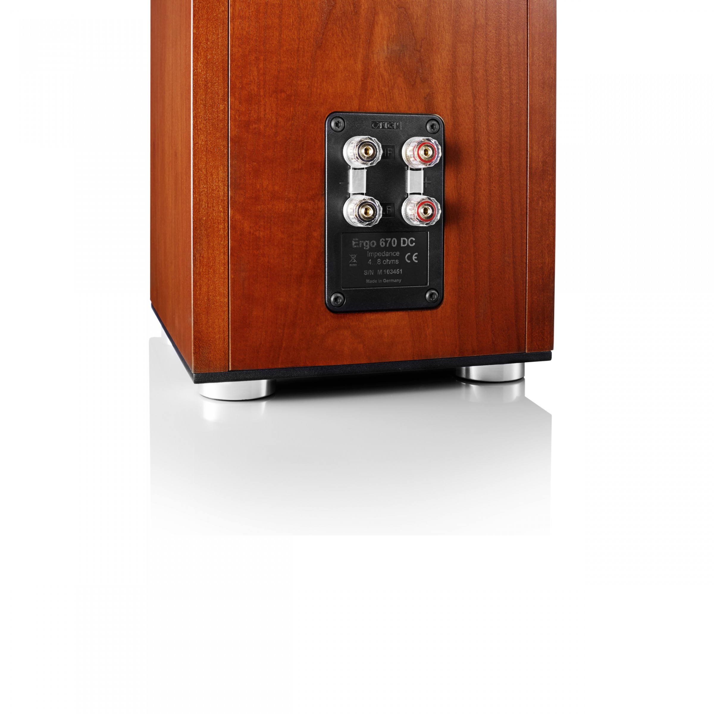 Тот, кто ищет классическую Hi-Fi систему, точно найдет в серии ERGO то, что он хочет. Дизайн не подверженный времени с покрытием натуральным шпоном премиального качества, металлические защитные сетки, закругленные углы корпуса – все это отличает серию Ergo. Классическая конструкция: твитер и СЧ динамик сверху, а снизу массивные НЧ динамики и фронтальный фазоинвертор.