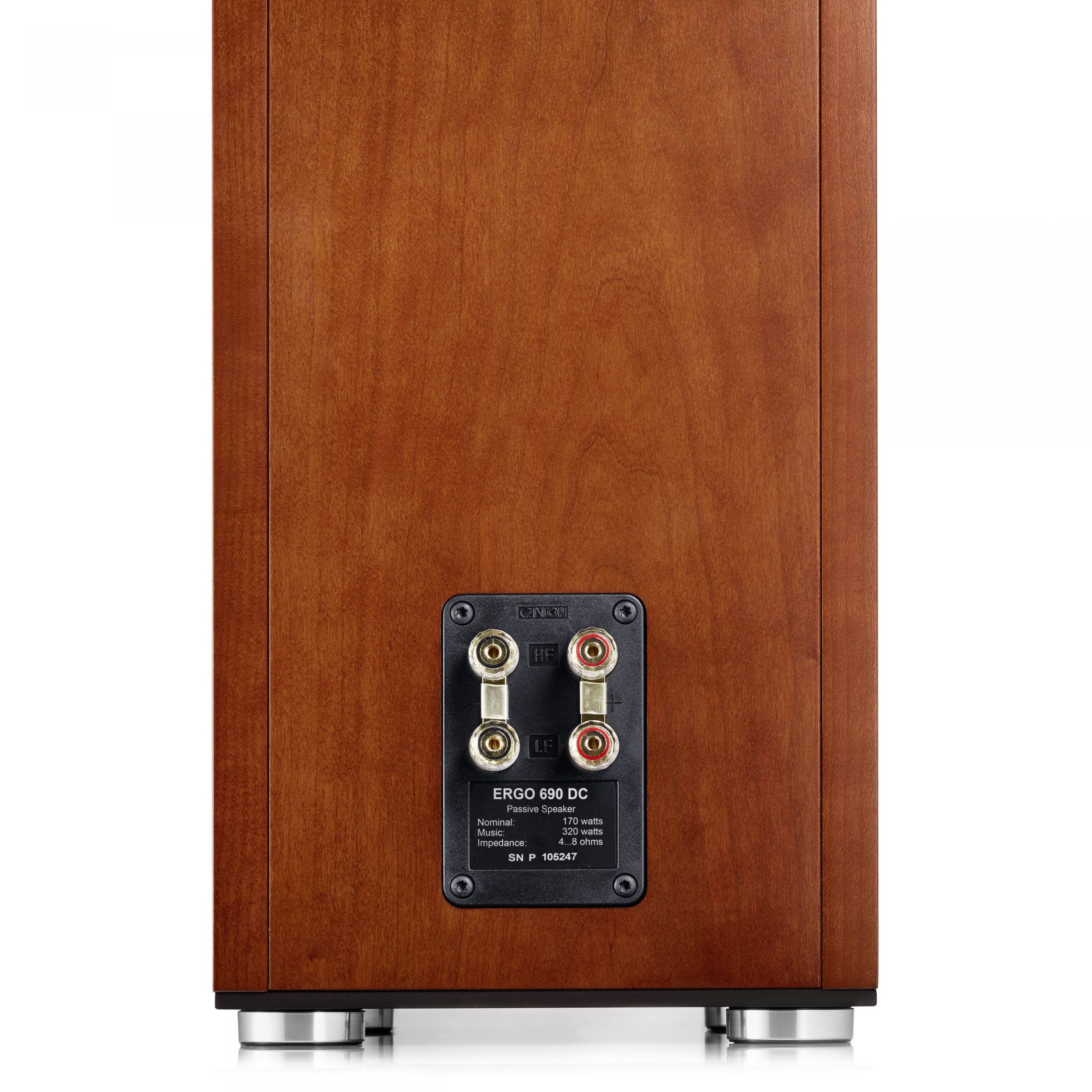 Тот, кто ищет классическую Hi-Fi систему, точно найдет в серии ERGO то, что он хочет. Дизайн не подверженный времени с покрытием натуральным шпоном премиального качества, металлические защитные сетки, закругленные углы корпуса – все это отличает серию Ergo. Классическая конструкция: твитер и СЧ динамик сверху, а снизу массивные НЧ динамики и фронтальный фазоинвертор.