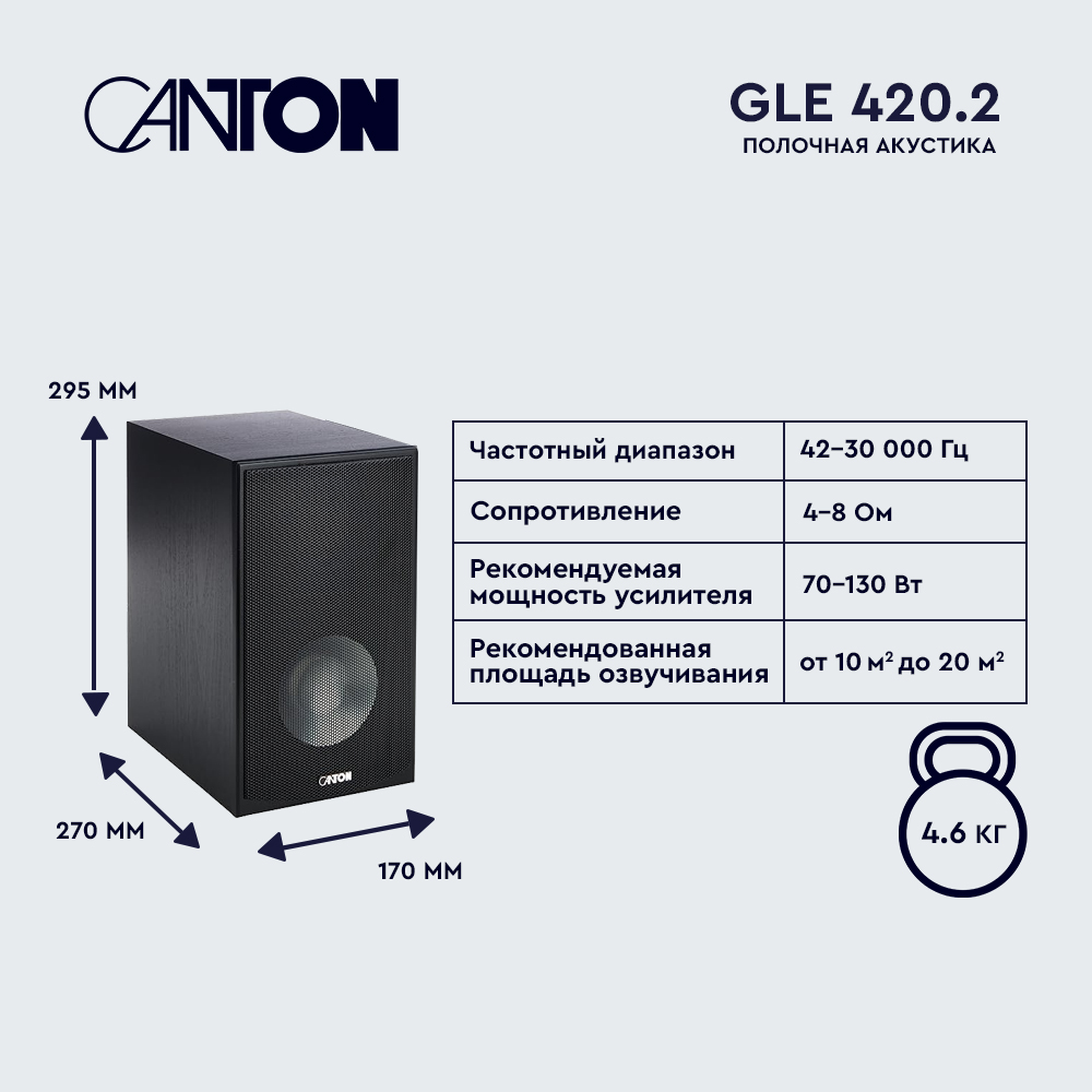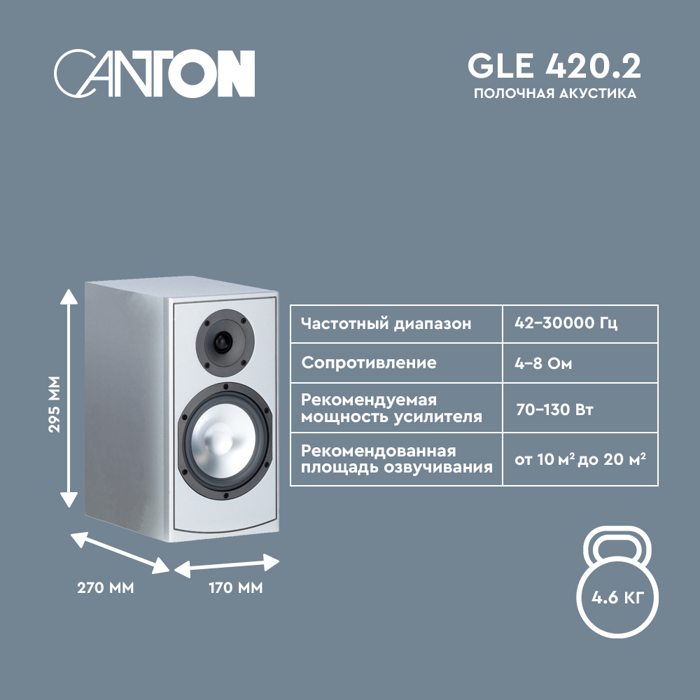 Полочная модель GLE420.2 - 2-полосная модель с СЧ-НЧ динамиками 15см. Мягкий твитер в оптимизированном рупоре позволяет получить оптимальную диагармму направленности распространения высоких частот. Колонки GLE420.2 отлично подойдут для компактных современных стерео систем.