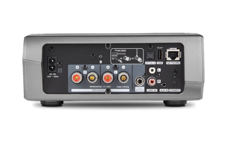 Сетевой, мультирум ресивер с поддержкой Hi-Res аудио, мощность 2 х 70 Вт, класс D, Wi-Fi, Bluetooth и PhoneShare, входы: USB для внешних накопителей, Ethernet, мини-джек, выходы: сабвуфер, габариты 221 х 93 х 214 мм, вес 2,8 кг.
