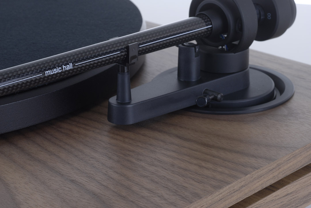 Карбоновый тонарм уникален для Music Hall. Крепление картриджа получило раздельное дополнительное демпфирование. Эта конструкция значительно улучшает звук и эффективность по сравнению с похожими полностью карбоновыми тонармами. Headshell из сплава позволяет надежно крепить картридж к тонарму без закрутки и изгиба, что является обычным в полностью углеродных конструкциях. Тонармы не должны скручиваться и изгибаться, поскольку это негативно влияет на способность картриджа и тонарма правильно отслеживать дорожку записи. На многих цельных углеродных тонармах можно буквально зажать конец картриджа руки между большим и указательным пальцами и скрутить/сгибать тонарм. Попробуйте это с проигрывателем Music Hall, и тонарм остается жестким. Сам рычаг размещен в 4-точечной конструкции карданного подшипника с использованием швейцарских подшипников ABEC. Это превосходит аналогичные приводы многих конкурентов, которые используют более простую, двухточечную систему подшипников.