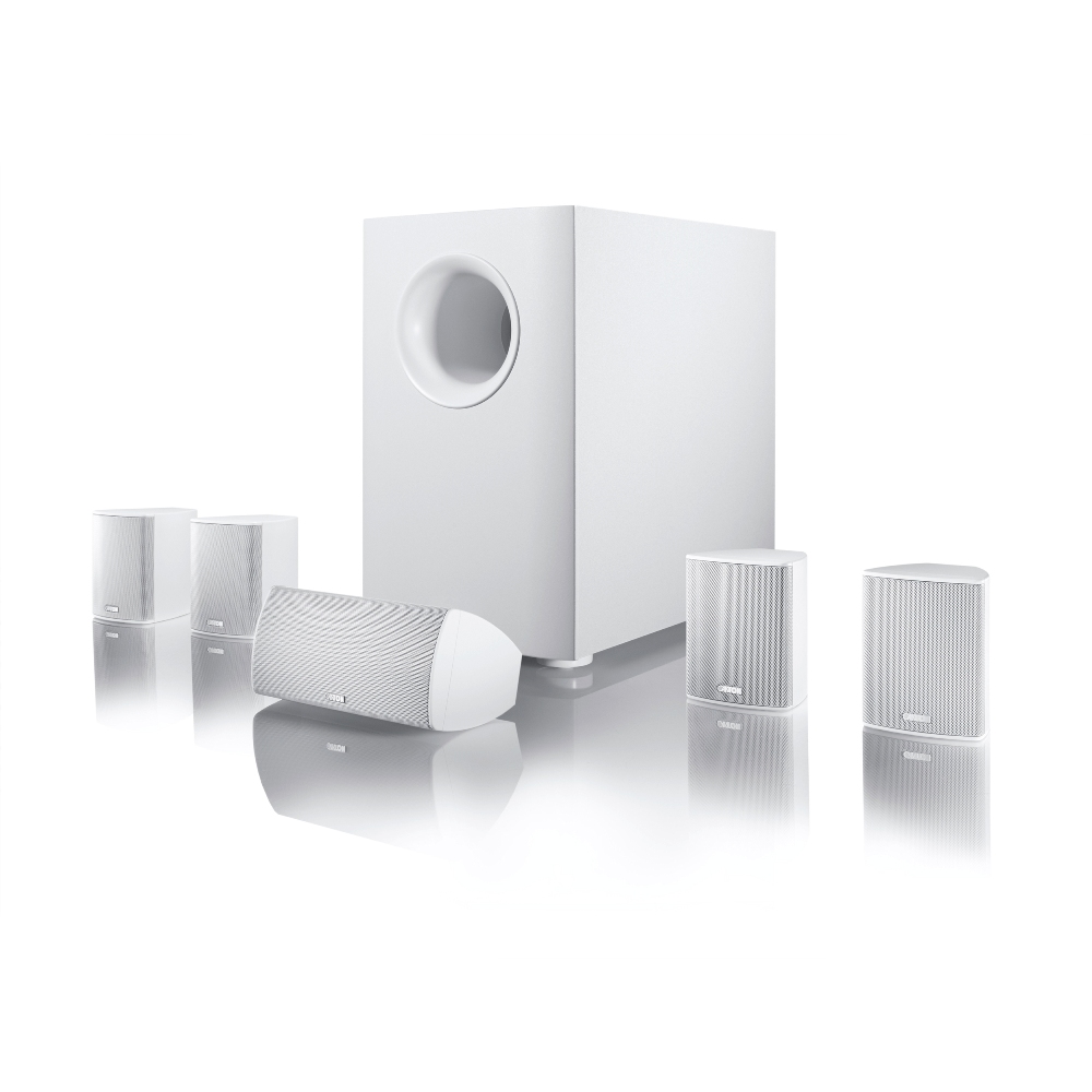 Комплект акустических систем 5.1. В состав входит 5 сателлитов и активный сабвуфер. Сателлиты имеют классическую 2-полосную конструкцию, с более качественным воспроизведением высоких и средних частот. Мощность 100 Вт. Настенные крепления для всех сателлитов в комплекте.