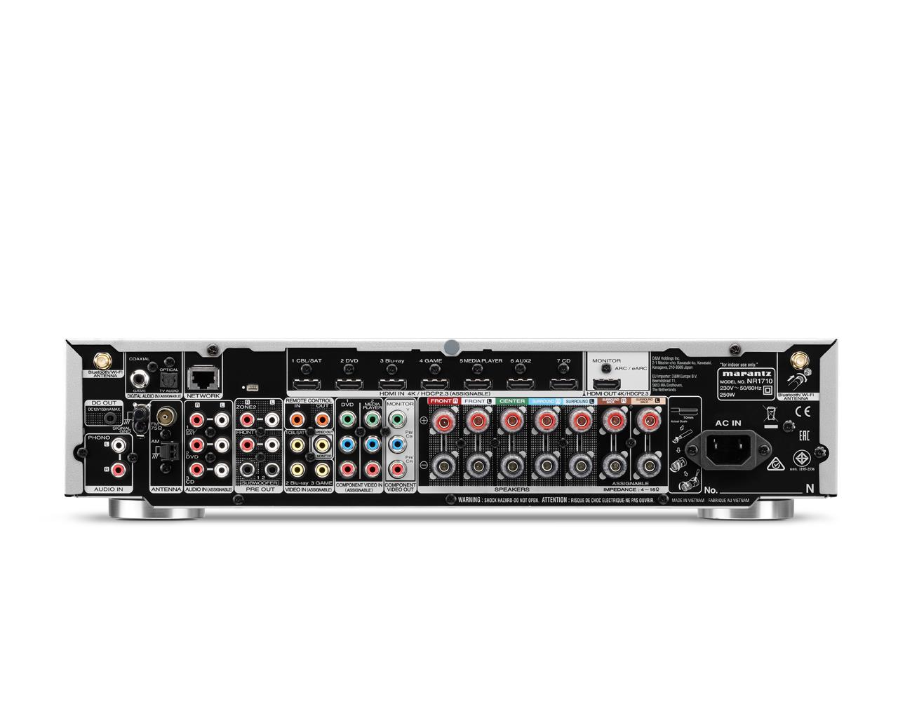 7.2-канальный AV ресивер Marantz NR1710 с 4k Ultra HD видео обеспечивает погружение в аудио высокого качества, умещаясь в очень компактном корпусе. Имея вдвое меньшую высоту передней панели, чем традиционные AV ресиверы, NR1710 поддерживает такие многомерные аудио форматы, как Dolby Atmos, DTS:X и технологии Dolby Atmos Height Virtualization, а также DTS Virtual:X. Наслаждайтесь вашей обширной коллекцией музыки с поддержкой Hi-Res форматов, с входом USB на передней панели и фонокорректором для подключения проигрывателя винила. Включайте стриминг музыки от ведущих онлайн сервисов и управляйте голосом ресивером NR1710 благодаря совместимости с Amazon Alexa, Google Assistant и Apple Siri. Восемь HDMI входов (один на передней панели) поддерживают новейшие форматы изображения, а также интерфейс eARC для передачи улучшенного аудио.