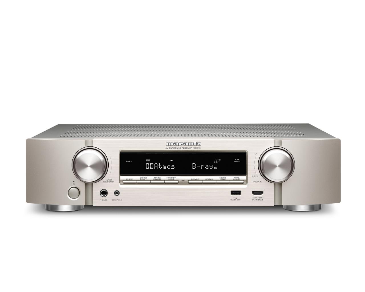 Наслаждайтесь музыкой именно так, как задумал исполнитель. NR1710 декодирует аудио высокого разрешения в форматах файлов ALAC, FLAC и WAV без потерь до 24-бит / 192 кГц, а также DSD 2.8 МГц и 5.6 МГц (аудиофильный формат SACD).