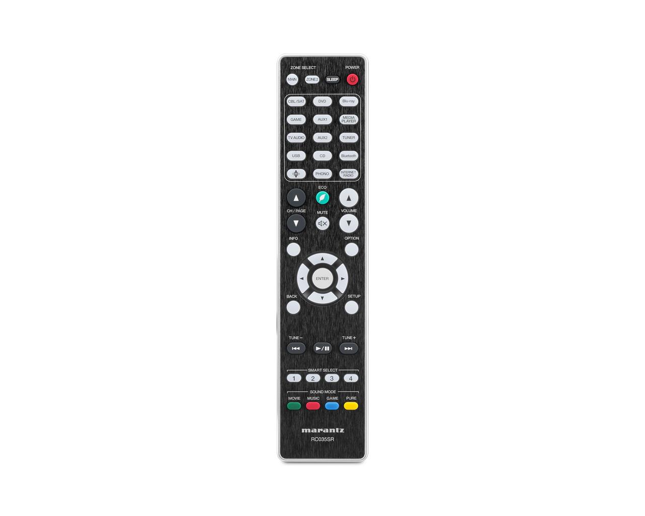 Четыре функциональных кнопки Smart Select на прилагаемом пульте запоминают ваши предпочтительные настройки — включая вход, громкость и конфигурация Audyssey— для конкретного источника. Нажатием такой кнопки ресивер идеально конфигурируется для любого источника, от Blu-ray до TV приставки, до вашей любимой интернет радиостанции и т.п.