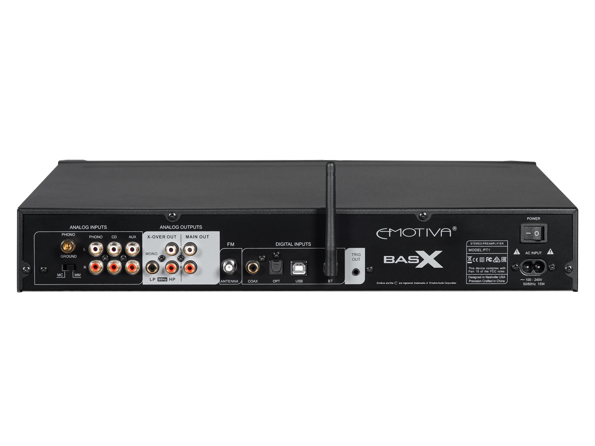 Модель BasX PT1, предлагаемая по удивительно доступной цене, позволяет сполна ощутить превосходное качество звука и широкие функциональные возможности, которые дает использование раздельных компонентов. PT1 — это предварительный стереофонический усилитель, который имеет FM-тюнер, линейные входы для подключения источников аналогового сигнала, встроенный ЦАП с широким выбором цифровых входов, включая асинхронный порт USB высокого разрешения и встроенный Bluetooth-приемник с поддержкой AptX HD, а также высококачественный фонокорректор, поддерживающий картриджи с подвижным магнитом (ММ) и подвижной катушкой (МС). Управлять PT1 можно с помощью простых органов контроля на передней панели или ИК пульта ДУ, входящего в комплект поставки. Интуитивно понятная система меню делает модель PT1 простой в настройке и эксплуатации, а большой и четкий ярко-синий VFD-дисплей на передней панели показывает текущее состояние системы. Вместе с усилителем мощности и парой хороших колонок PT1 образует великолепно звучащую стереосистему, а встроенный активный кроссовер позволяет добавить активный сабвуфер для превращения ее в трифоник — аудиофильскую 2.1-канальную систему.