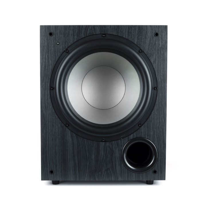 Динамик и фазоинвертор саба почти полностью заняли его лицевую панель: динамик — в верхней ее части, фазоинвертор — в правом нижнем от слушателя углу.