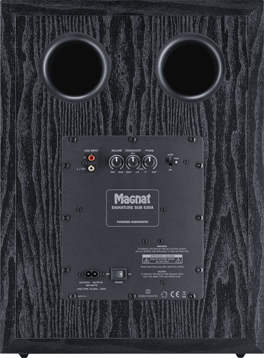 Активный сабвуфер Magnat Signature 530A позволяет существенно усилить басовый диапазон стерео системы (при наличии RCA выхода на сабвуфер) и домашнего кинотеатра. Он позволяет воспроизводить низкие частоты ниже 22гц. При этом звучание на басах остается точным и контролируемым на очень высокой мощности (до 280 Вт). Сабвуфер оснащен 30см динамиком, с диафрагмой на основе усиленной бумаги. Имеются регулировки громкости, частоты среза НЧ фильтра, плавная регулировка фазы и активация режима автоматического включения и выключения.