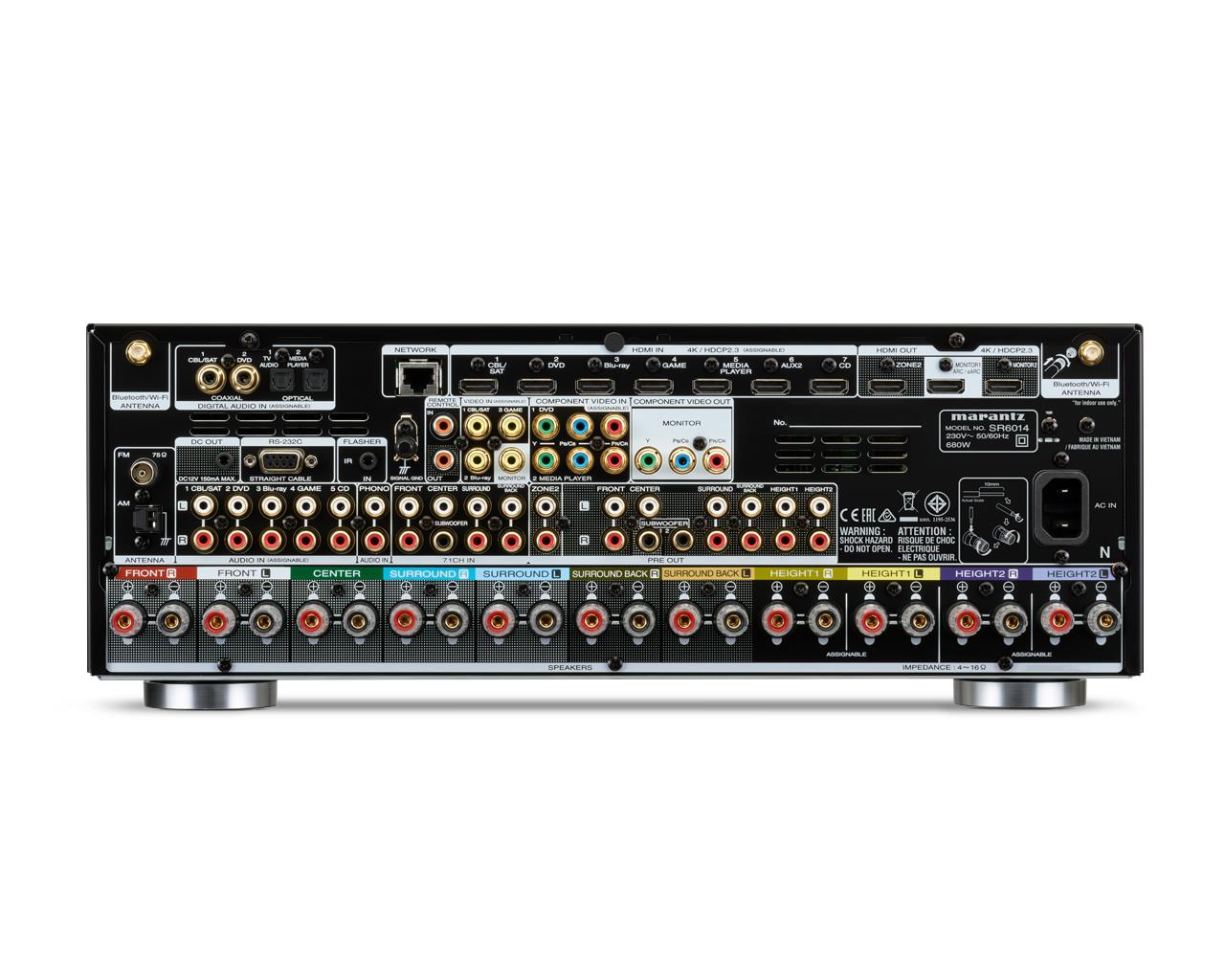 Оснащенный усилителем мощности на дискретных элементах, выдающим большие токи во всех каналах, SR6014 выдает 185 Вт на канал. Благодаря возможности работы с низкоимпедансными нагрузками он предлагает стабильность с широким разнообразием колонок – для сбалансированного звука высокого качества. Режим Auto Eco Mode подстраивает выходную мощность в зависимости от громкости и выводит на экран «эко-метр», обеспечивая снижение потребления энергии в реальном времени, без ущерба для прославленного качества звука Marantz.