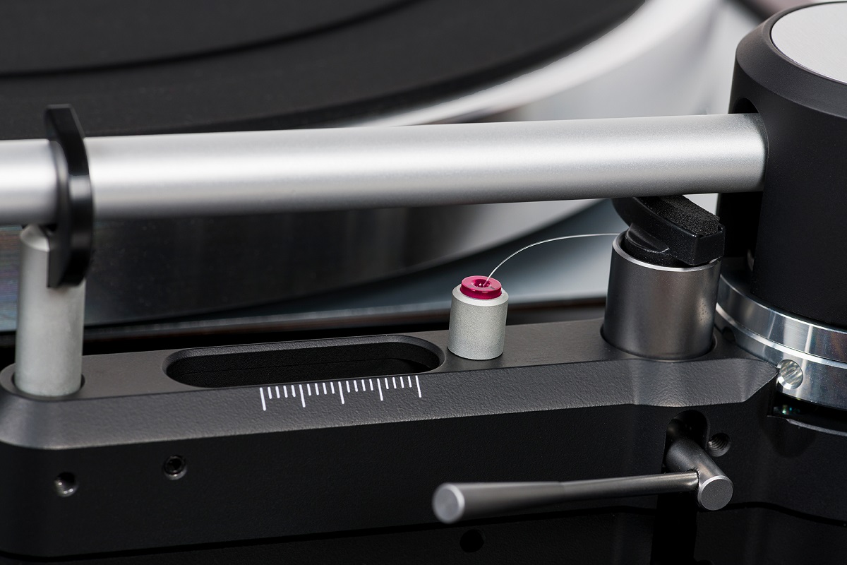 Антискейтинг задается скользящим грузом в основании тонарма, который закреплен на нейлоновую нить, направляемую над рубиновым подшипником.