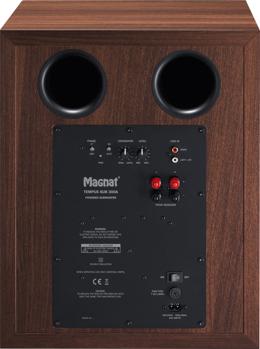 - 300-мм НЧ-динамик высокой мощности с длинным ходом диффузора и бумажной мембраной с покрытием плюс фазоинвертор для мощного воспроизведения баса