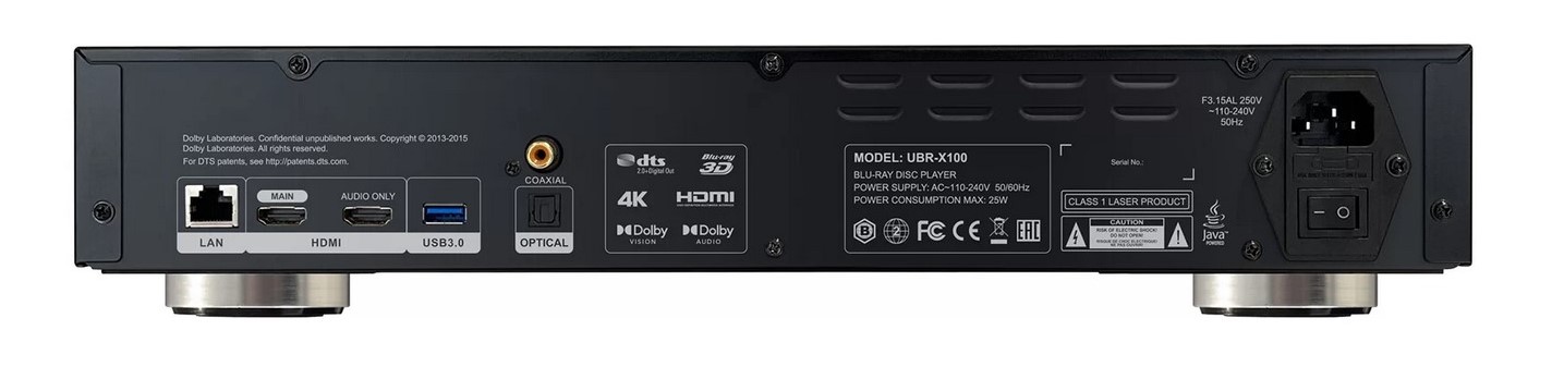 Являясь универсальным проигрывателем, UBR-X100 воспроизводит оптические диски различного типа, включая новейший формат Ultra HD Blu-ray, который обеспечивает разрешение, в четыре раза превышающее стандарт 1080p Full HD. Также он воспроизводит Blu-ray, Blu-ray 3D, DVD, DVD Audio, CD; музыкальные, видео- и аудиофайлы такие, как FLAC, AIFF, DFF, DSF, JPG, TIFF, MKV, M2TS. Кроме того, UBR-X100 воспроизводит аудио- и видеоконтент с внешних накопителей с интерфейсом USB или с DLNA-серверов.
