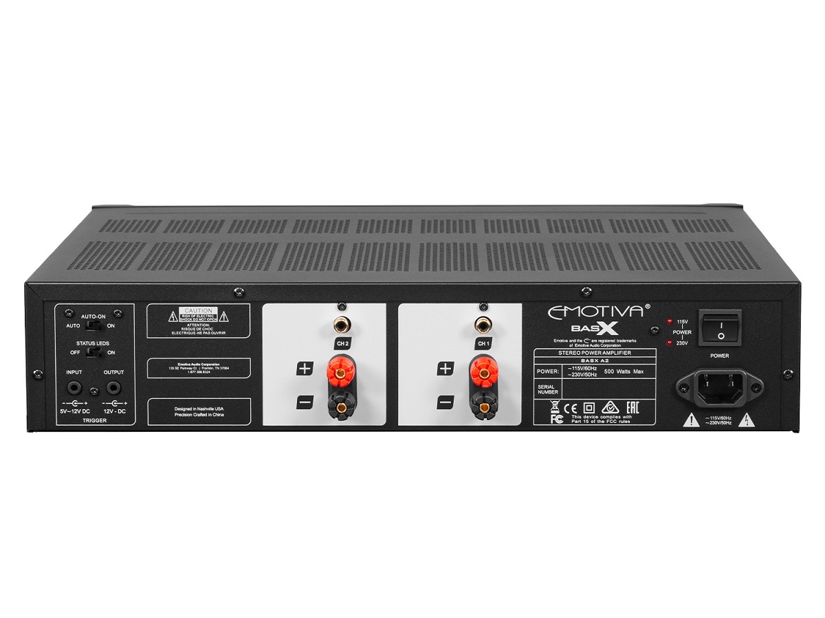 BasX A2 представляет собой двухканальный усилитель мощности 160 Вт/канал на 8 Ом и 250 Вт/канал на 4 Ом с номинальным значением КНИ+Ш < 0,02% и отношением сигнал/шум 112 дБ по шкале А. Он имеет массивный встроенный источник питания, высококачественную схему усиления класса A/B, защиту от сбоев, не оказывающую влияние на сигнал, а также триггерные вход и выход. BasX A2 также предлагает функцию автоматического включения при обнаружении аудиосигнала на входе, что особенно удобно, если ваш предусилитель или ресивер не имеет триггерного выхода. Высококачественные несимметричные входы с разъемами RCA промышленного стандарта позволяют использовать BasX A2 практически с любым предусилителем или процессором, а акустические клеммы аудиофильского уровня с пятивариантным подключением предусматривают использование штекеров типа «банан», коннекторов типа «лопатка» или просто оголенных проводов. В совокупности эти особенности обеспечивают отличные характеристики и по-настоящему высокое качество звука BasX A2 при его, на удивление, доступной цене.