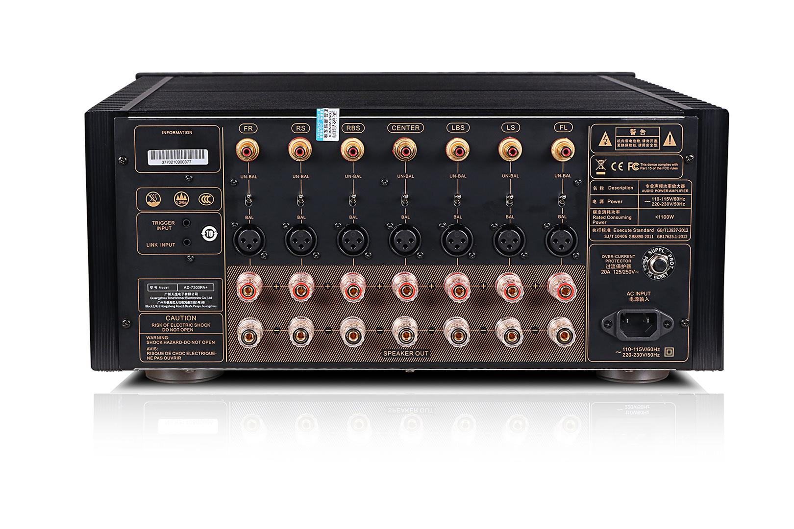 7-канальный усилитель мощности. Мощность 7х300 Вт (8 Ом). Входы 7RCA, 7XLR. Стрелочные индикаторы. Триггеры. Размеры (ШхВхГ): 440х197х445мм. Вес: 25кг.