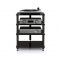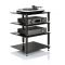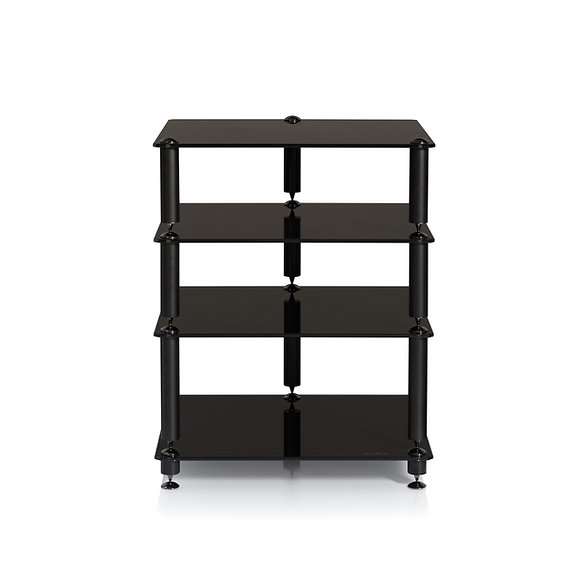 Стойка для Hi-Fi компонентов. 4 полки из закаленного стекла (8мм). Металлическая модульная конструкция. Расстояние между полками 182/ 182/ 242мм. Размеры (ШхВхГ): 559x709x500мм.