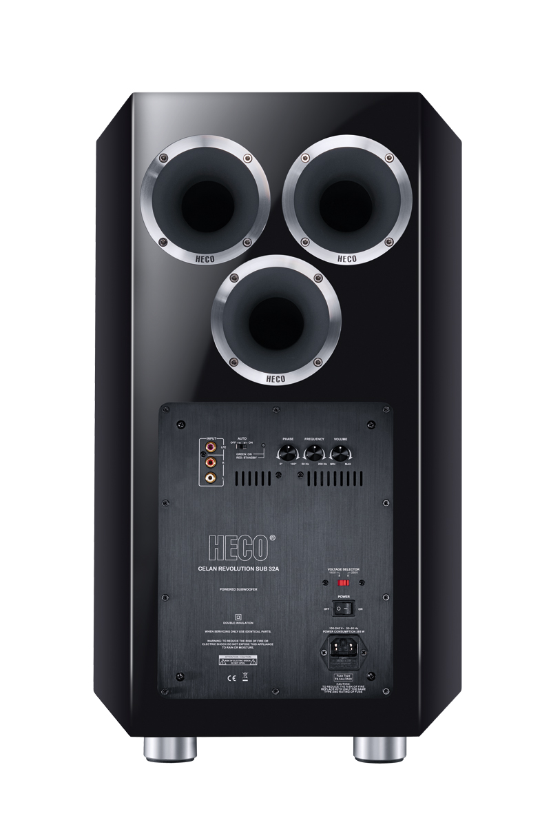 Вуфер, диаметром 300 мм на длинноходном подвесе и встроенный усилитель класса «D» максимальной мощностью до 500 Вт, позволяет получить удивительно быстрый, хлесткий и одновременно глубокий и масштабный бас, что делает его незаменимым, как для захватывающего воспроизведения спецэффектов в кино, так и для басовой поддержки аудиофильской стерео системы при прослушивании музыки. Прочный и жесткий корпус из МДФ, усиленный внутренними распорками исключает какие-либо призвуки и резонансы, а крупные алюминиевые ножки с виброразвязывающими резиновыми вставками, максимально изолируют его от пола. Celan Revolution Sub 32A имеет фронтальное размещение динамика, что в совокупности с плавной регулировкой фазы, уровня и частоты среза, облегчает его интеграцию в домашний кинотеатр. Celan Revolution Sub 32A поставляется в тех же вариантах отделки, как и остальные АС серии Celan Revolution – Черный рояльный лак, Белый сатин и Эспреcсо шпон.