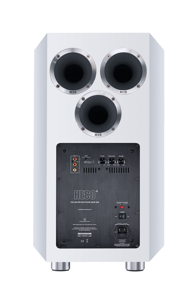 Вуфер, диаметром 300 мм на длинноходном подвесе и встроенный усилитель класса «D» максимальной мощностью до 500 Вт, позволяет получить удивительно быстрый, хлесткий и одновременно глубокий и масштабный бас, что делает его незаменимым, как для захватывающего воспроизведения спецэффектов в кино, так и для басовой поддержки аудиофильской стерео системы при прослушивании музыки. Прочный и жесткий корпус из МДФ, усиленный внутренними распорками исключает какие-либо призвуки и резонансы, а крупные алюминиевые ножки с виброразвязывающими резиновыми вставками, максимально изолируют его от пола. Celan Revolution Sub 32A имеет фронтальное размещение динамика, что в совокупности с плавной регулировкой фазы, уровня и частоты среза, облегчает его интеграцию в домашний кинотеатр. Celan Revolution Sub 32A поставляется в тех же вариантах отделки, как и остальные АС серии Celan Revolution – Черный рояльный лак, Белый сатин и Эспреcсо шпон.