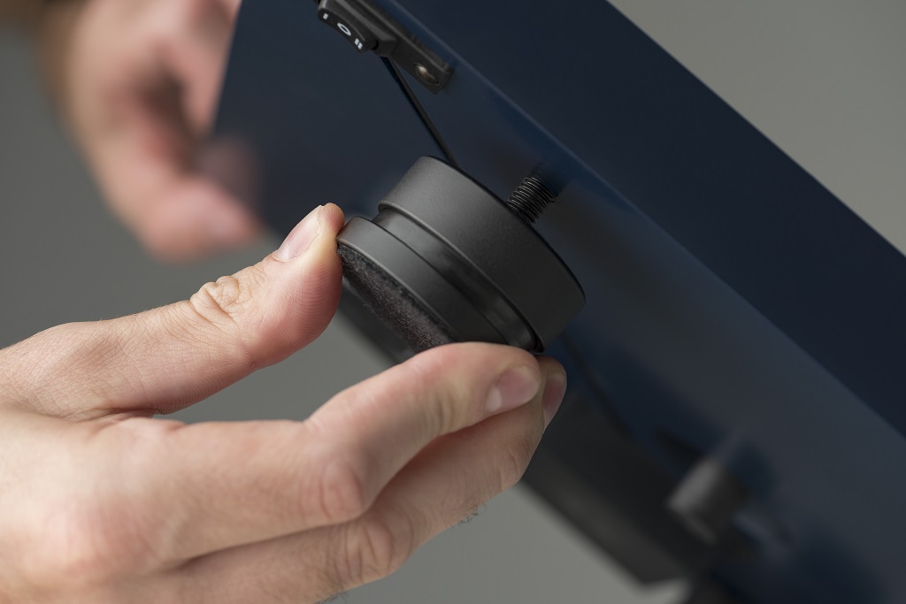 В моделях Debut Carbon прежних лет имелся один недостаток, который было решено обязательно исправить в новом версии проигрывателя. Вместо 4-х демпфирующих ножек, теперь используются три и они регулируются по высоте, что обеспечивает устойчивость и абсолютно горизонтальное положение проигрывателя на любой поверхности. Это очень важный момент для получения действительно качественного звука.