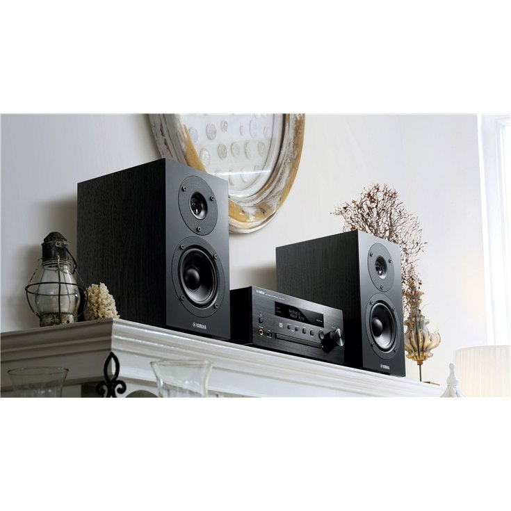 Сетевая микросистема с CD проигрывателем и FM тюнером. Wi-Fi, USB интерфейс. Bluetooth, Air-Play. Мощность 50 Вт. Совместимость с компонентами Yamaha MusicCast
