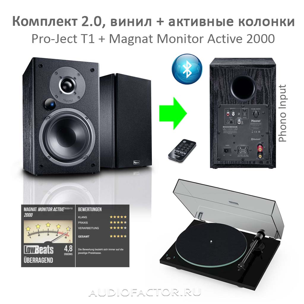 Комплект: винил + активные колонки. Состав: проигрыватель виниловых пластинок Pro Ject T1 + активная акустика Magnat Monitor Active 2000. Музыкальная мощность 80 Вт х 2. Диапазон 38Гц-40кГц. Входы Bluetooth, Digital optical. Цвет черный.