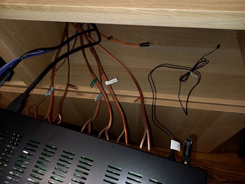 Реализация домашнего кинотеатра Dolby Atmos 5.1.2a, с использованием Atmos акустики, работающей на отражении звука от потолка. Настройка системы производилась с использованием платного приложения Audyssey Mult EQ Editor, была произведена дополнительная коррекция АЧХ высокочастотной зоны, и точная настройка положения и наклона надстроек Monitor Audio Atmos.